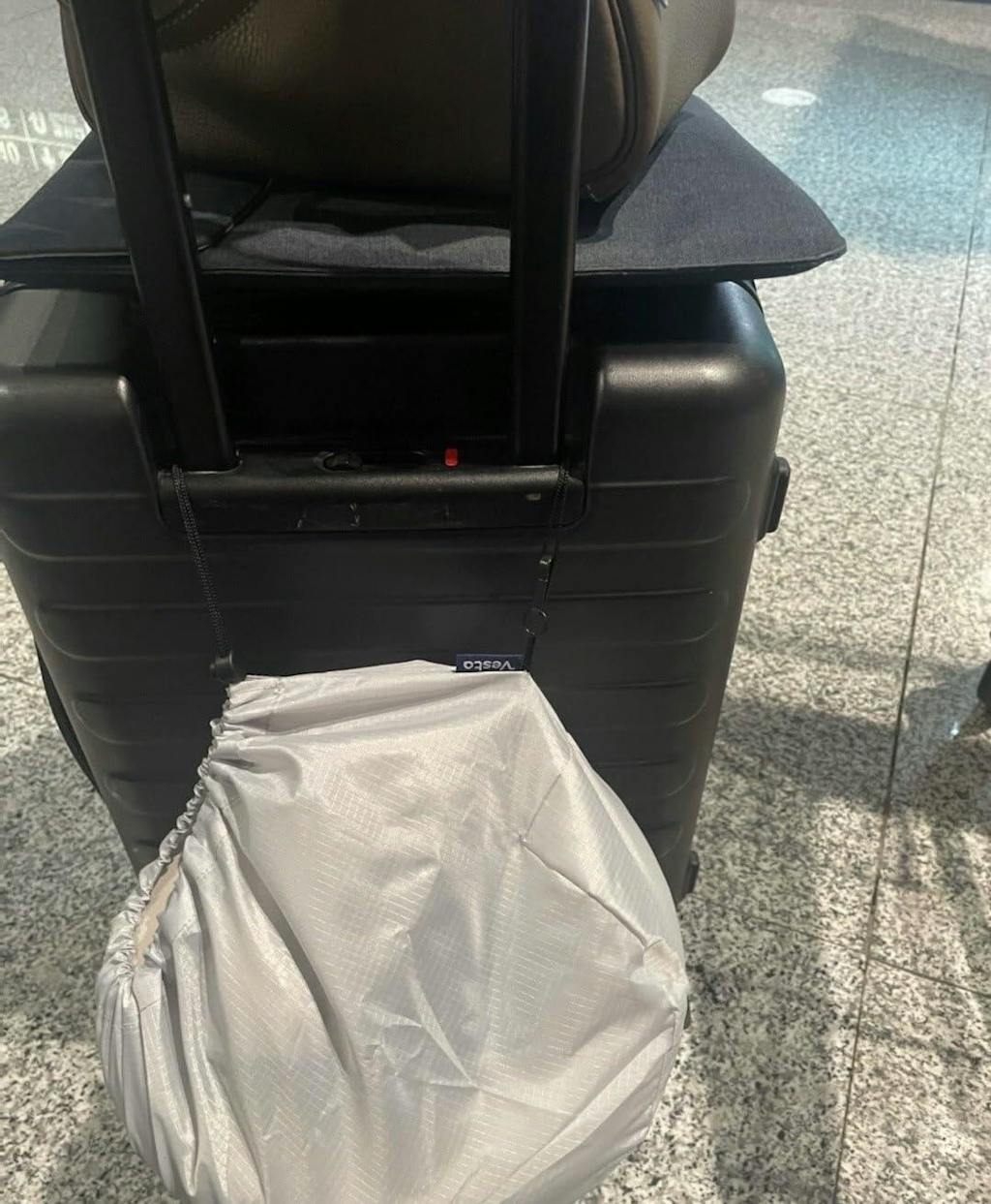 Can be easily attached to a suitcase or a handbag to save space.