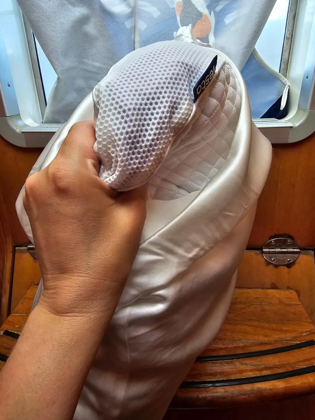 The side mesh fabric ensures optimal breathability, effectively preventing heat and moisture accumulation for a comfortable sleep experience.
